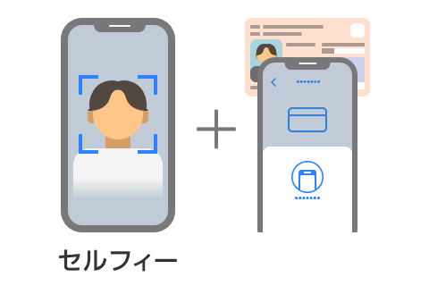 ICチップの電子署名検証により、改ざんの有無を確認可能。さらに、自撮りの顔画像と、本人確認書類の顔情報の一致を確認し、なりすましを防止します。